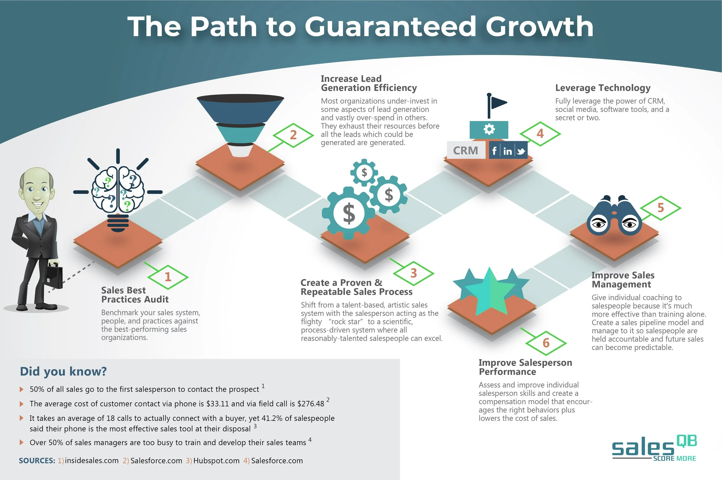 Conduct a structured sales “Best Practices Audit” across strategy, process, pipeline, people, and tools, using the proven SalesQB methodology.